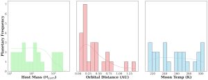 The research identified potential candidates based on model constraints and calculated the potential exomoon’s surface temperature. Figure 2 shows the relationship between these selection inputs and the resulting model output.