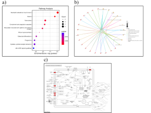 From the KEGG results, Neutrophil extracellular trap formation was identified as the most significant pathway because of its high enrichment score and p-value (Figure 4a). Then the C-Net plot and pathway was used to determine significant genes for this specific pathway (Figure 4b and 4c).