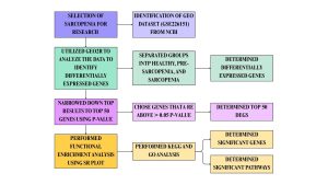 Then the datasets were defined or categorized into groups of healthy, pre-sarcopenia, and sarcopenia. Healthy age refers to individuals who did not develop sarcopenia (Figure 1). Pre-sarcopenia refers to low muscle mass without impact on muscle strength or physical performance. Sarcopenia refers to individuals with the disease (1). The healthy group has 20 samples, the pre-sarcopenia group has 19 samples, and the sarcopenia group has 19 samples. This was analyzed using the no-code GEO2R bioinformatics tool that uses the R programming language (13). Figure 1 below summarizes the steps and bioinformatics tools used in this study.