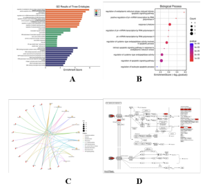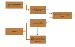 Then SRPlot12, KEGG13, and GO14,15 bioinformatics tools and databases were utilized to analyze the functions of these top genes. These tools helped uncover the potential roles of the genes in Mycobacterium Tuberculosis. SRPlot was used in tandem with KEGG and GO to generate the visuals shown in figure 3.