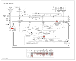 Figure 3b. This image represents the Cholesterol metabolism pathway and the genes significantly involved in the KEGG result in red. Significant genes include ApoB-100, ApoE, and ApoB-48