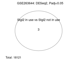 Using GEO2R (8), the control and experimental groups were analyzed a second time and results showed, only 3 genes were found to be differentially expressed in Figure 3. The SCD, TSIX, and XIST genes were differentially expressed which shows their significance in this study. 3 of the 18121 genes were differentially expressed in Figure 4. Going back to the google sheet, we found that the SCD, TSIX, and XIST genes were all part of the top 30 DEGs.