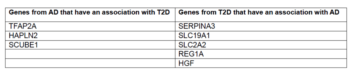 However, not everyone who has a mutation in any of these genes ends us with AD. Therefore, the genetic basis of the disease is not yet established and this is a research gap this current study is addressing. Results from this study are important in contributing to the identification of genes or biological markers related to AD and T2D that can serve as potential targets for treatment.